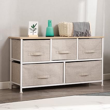 Dlandhome Meuble De Rangement Etagere En Metal Avec Tiroirs Boites De Rangement En Tissu Amovibles Commode Pour Chambre 5 Tiroir Beige Amazon Fr Cuisine Maison