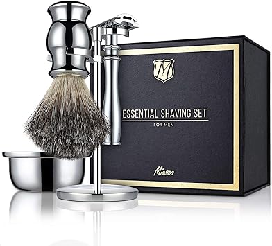 Miusco Kit De Rasage Pour Homme 5 Pieces Blaireau En Poils De Blaireau Poli Support De Rasage En Acier Inoxydable Poli A La Main Bol De Rasage Et Rasoir De Securite Amazon Fr