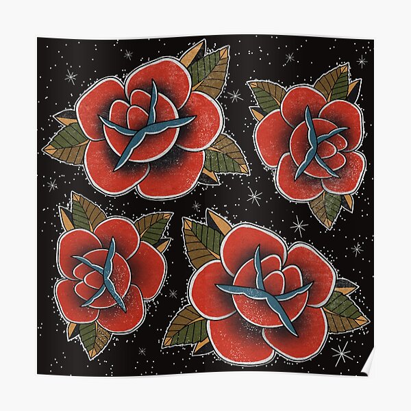 Posters Sur Le Theme Traditional Rose Tattoo Redbubble