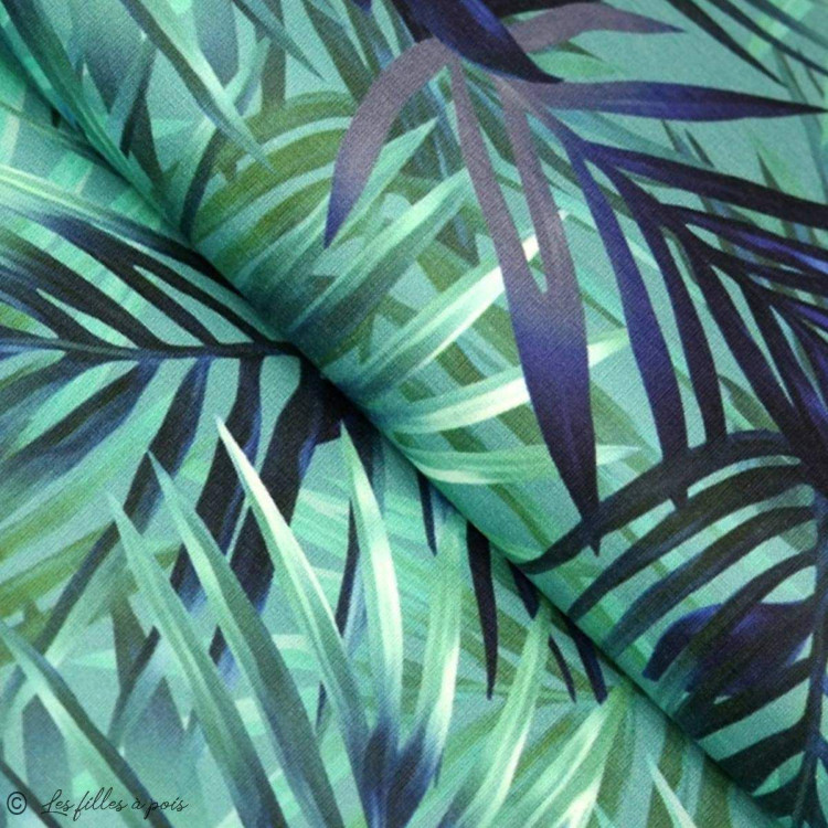 Tissu Jersey Motif Feuille De Palmier Tons Verts Oeko Tex Stenzo Textiles Achat Vente