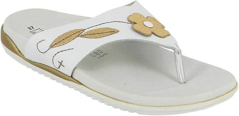 Tongs Cuir Femme De Couleur Or Avec Des Motifs De Feuille