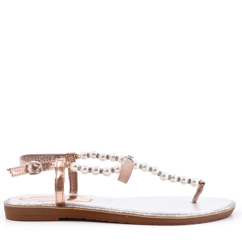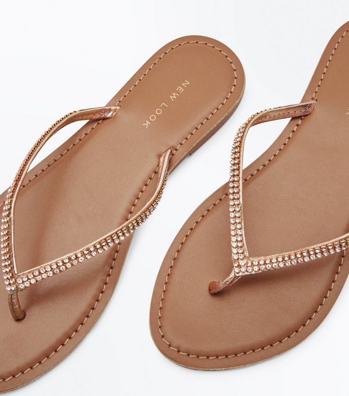 Tongs En Cuir Couleur Or Rose A Bride A Strass New Look