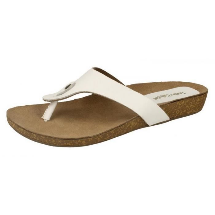 Leather Collection Tongs En Cuir Femme Blanc Prix Pas Cher Cdiscount
