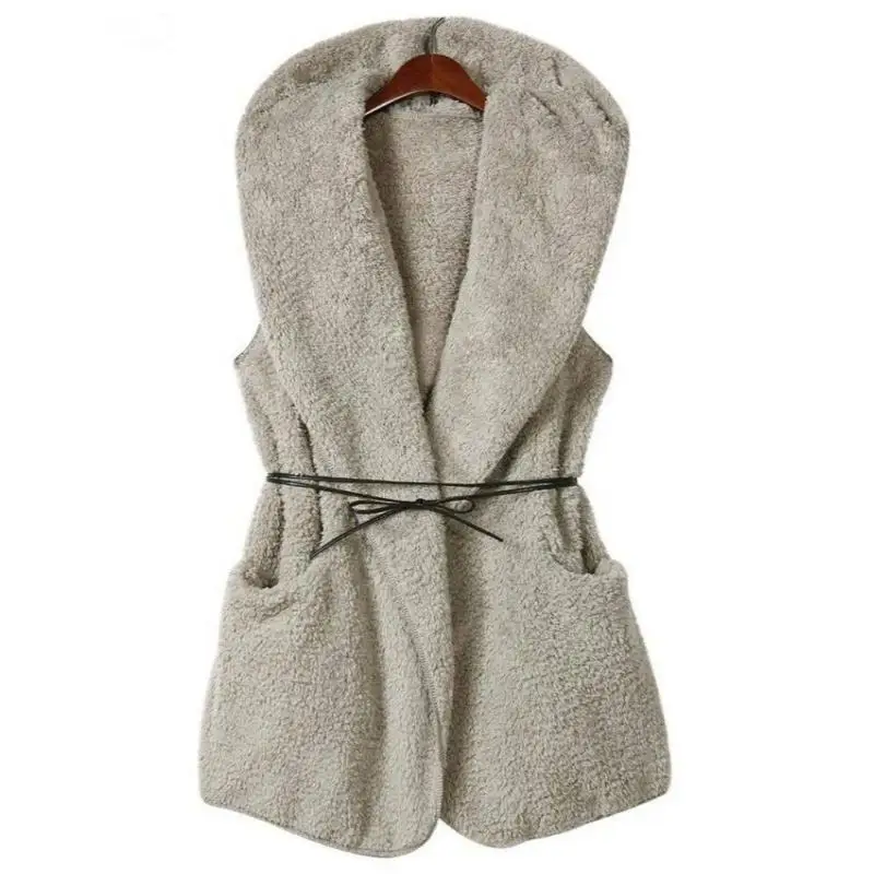Femmes En Cachemire A Capuche Gilet Longue Section Agneau Velours Vestes Avec Ceinture Agneau Velours Veste Sans Manches Ouvrir Point Chaquetas Mujer Aliexpress