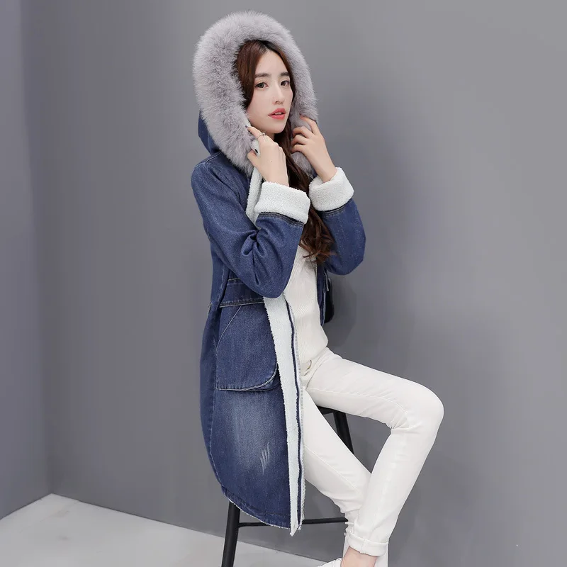 Zvaqs Hiver Denim Veste En Laine Femme Reel Renard Col En Fourrure A Capuche Longue Veste En Jean Agneau Coton Jeans Outwear Grande Taille St025 Aliexpress