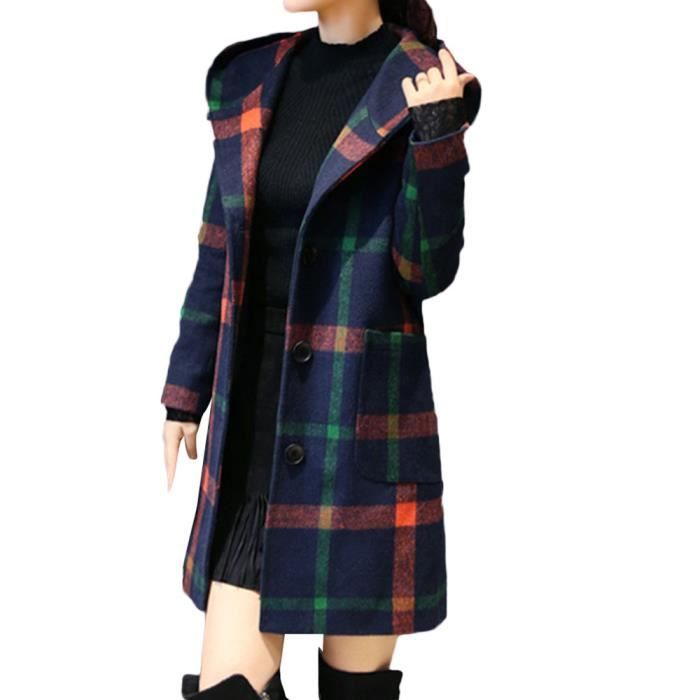 Femmes Mode Manches Longues A Capuche Bouton Veste A Carreaux Manteau En Laine Avec Vert Achat Vente Manteau Caban Cdiscount