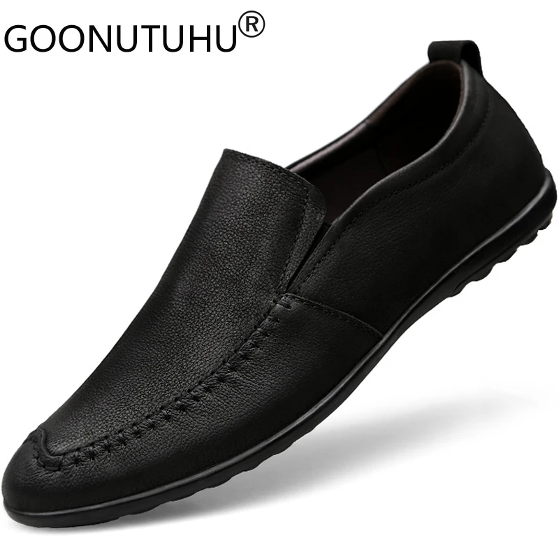 Mode Chaussures Pour Hommes Decontracte En Cuir Veritable Mocassins Male Noir Marron Sans Lacet Chaussure Homme Confortable Plate Forme Conduite Chaussures Pour Hommes Aliexpress
