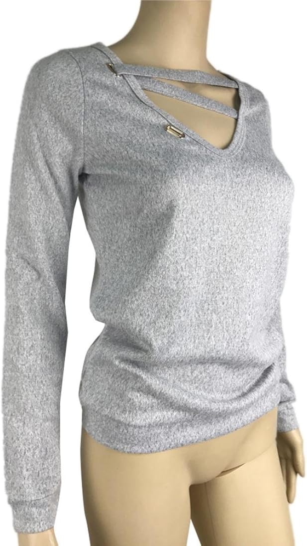 Longra Chemisier Femme Chic Uni Col V Manche Longue Loose Tricote Chandail Pull Tunique Pull Original Femme Pull Mi Long Tops A Manches Longues Automne Hiver T Shirt Femme Originaux Pulls Vetements