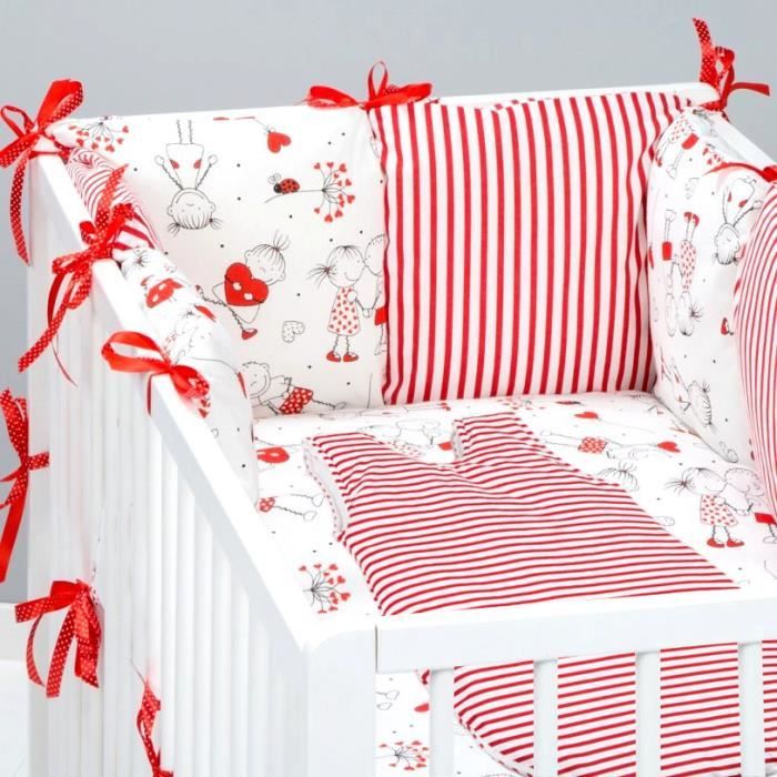 Set 8 Pcs Linge Lit Bebe Evolutif Tour De Lit 6 Coussins Grande Taille Gigoteuse Drap Housse Fille Garcon Rouge Raye Achat Vente Parure De Lit Bebe Soldes