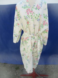 Robe De Chambre Femme En Coton Blanc Fleurs Rose Bleu Vert Ebay