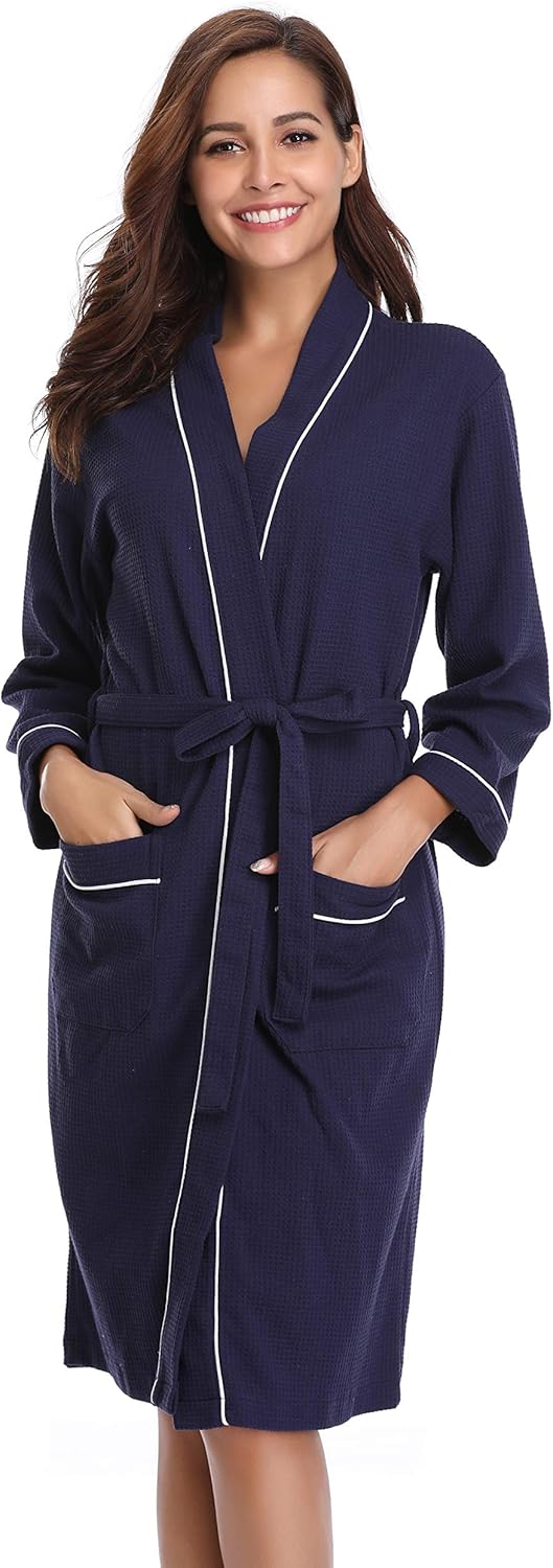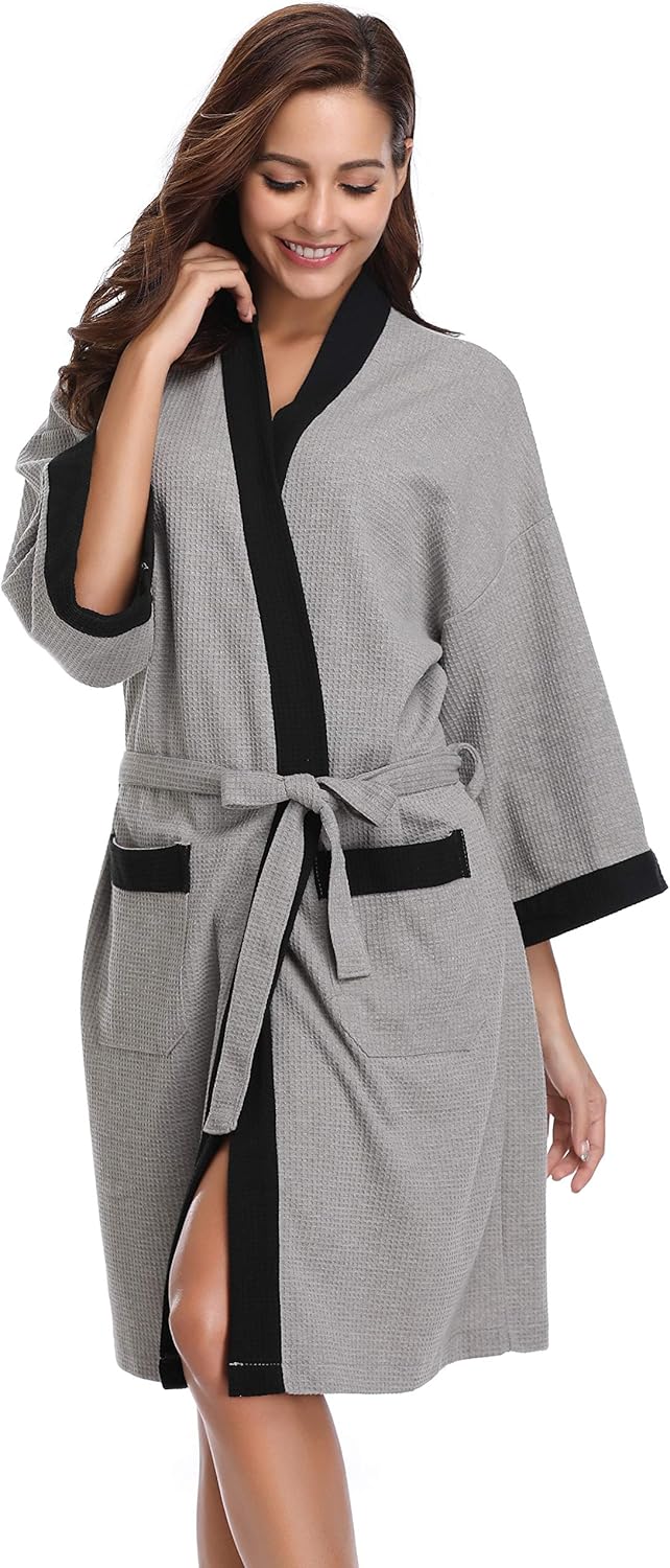 Vlazom Peignoir Femme Coton Gaufre Leger Robe De Chambre Unisexe Spa Sauna Peignoir De Bain Eponge Femme Vetements