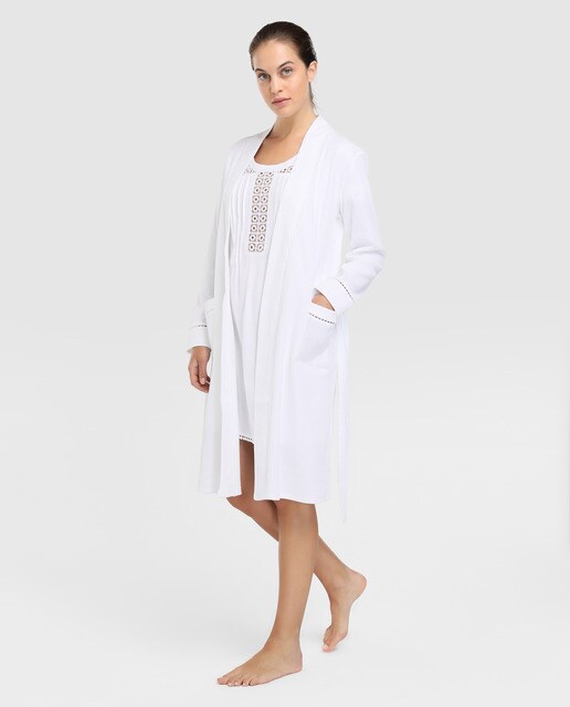 Robe De Chambre Femme Coton Brodee Irina Perle Carre Blanc
