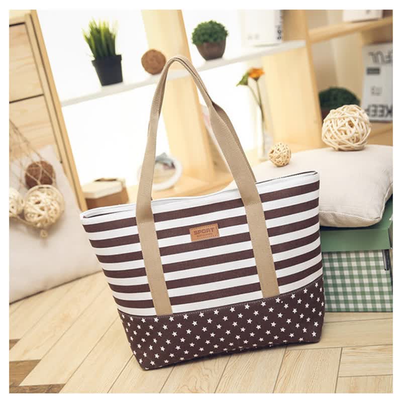 Shop Smooza Fashion Striped Casual Tote Women Canvas Handbag Casual Shoulder Shopping Bags Beach Zipper Large Bag Sac A Main Bolsas Online From Best Shoulder Bags On Jd Com Global Site Joybuy Com