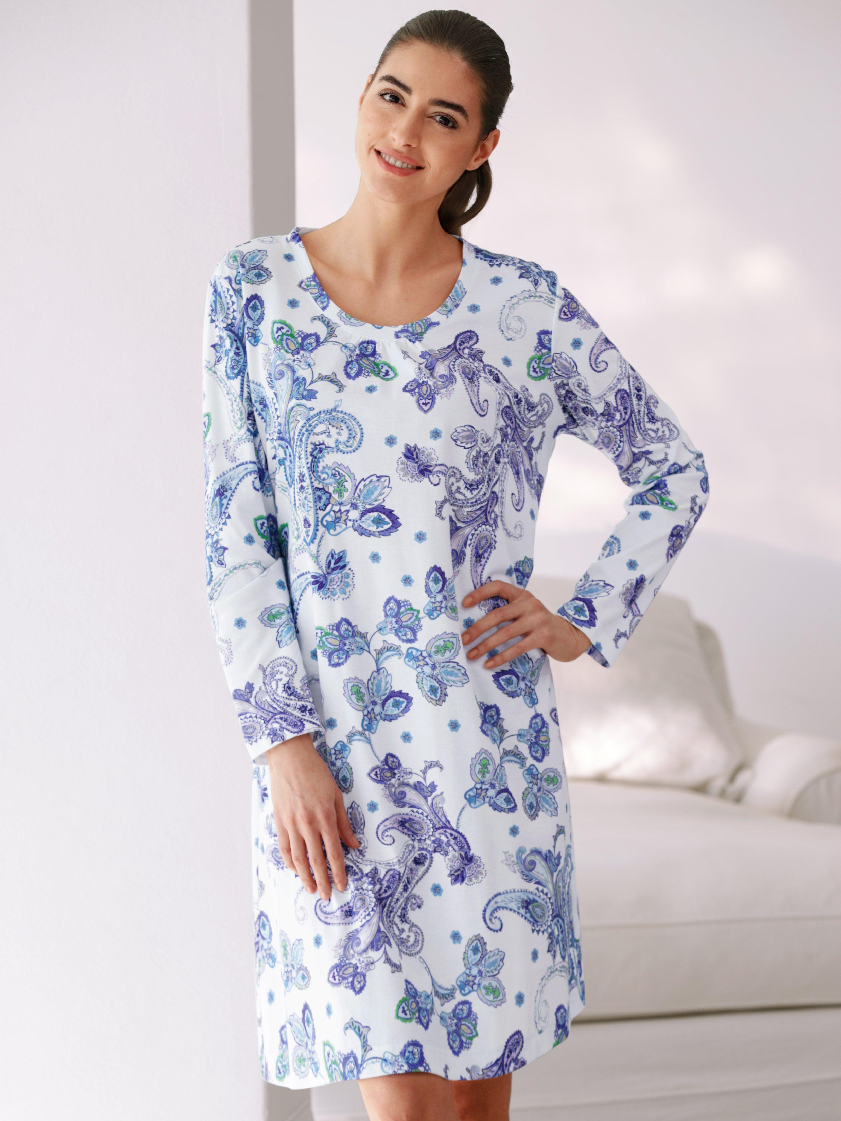 Chemise De Nuit Manches Longues Pur Coton Peigne Imprime Bleu Femme Damart