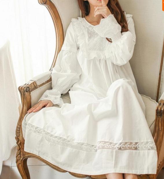 Cottonreal Pyjama Chemise De Nuit Blanche Dentelle Cetaellecetalui
