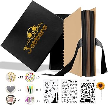 Amazon Com Scrapbook Photo Album Diy Kit Baby Scrapbook Album Wedding Guest Book Anniversary Scrapbook School Memory Book Keepsake Handmade With Many Accessories Black Paper 80 Pages