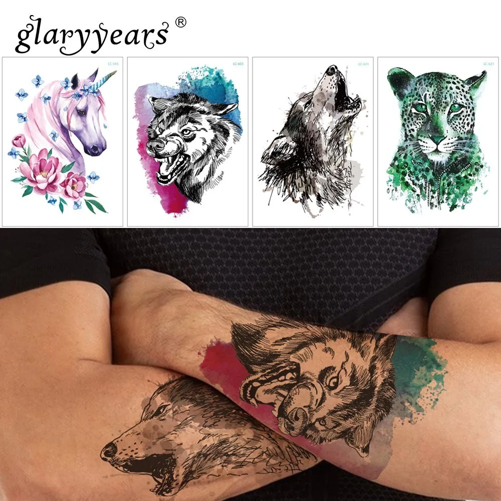 Glaryyears 1 Feuille Temporaire Tatouage Autocollant Mode Faux Tatoo Loup Flash Tatto Etanche Petit Corps Art Hommes Femmes 25 Designs Aliexpress