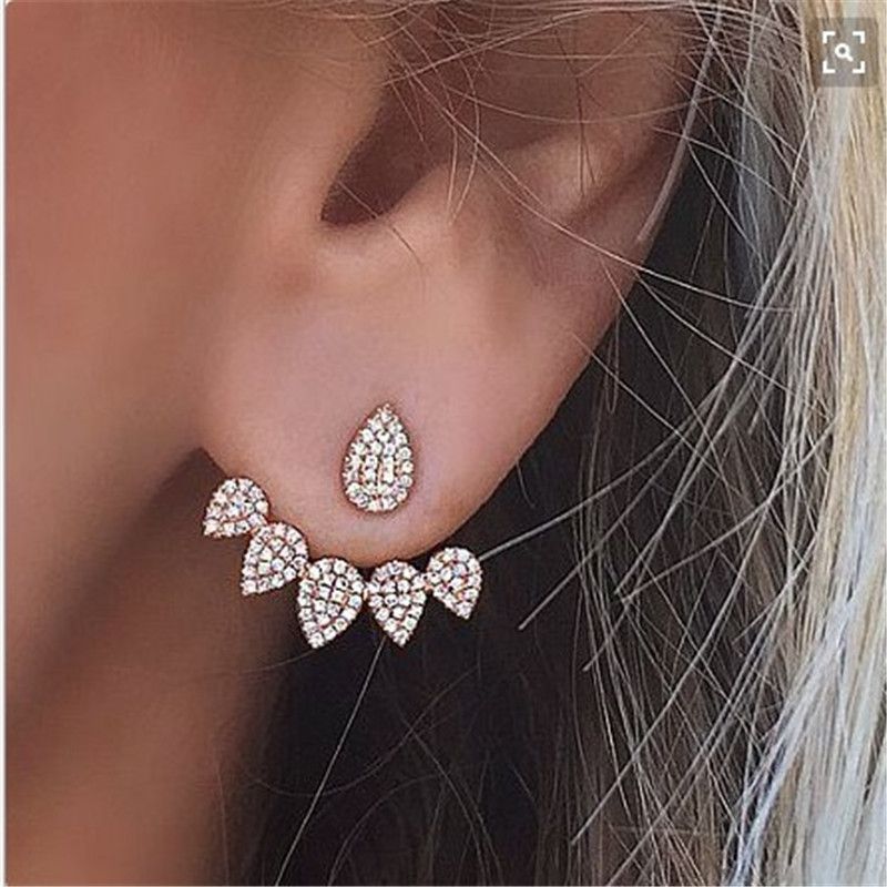 Acheter Boucle Doreille Double Face Pour Les Femmes Piercing Earing Bijoux Mode Argent Couleur Or Strass Cristal Goutte Deau Stud Boucle Doreille De 0 91 Du Olivia Dhgate Com