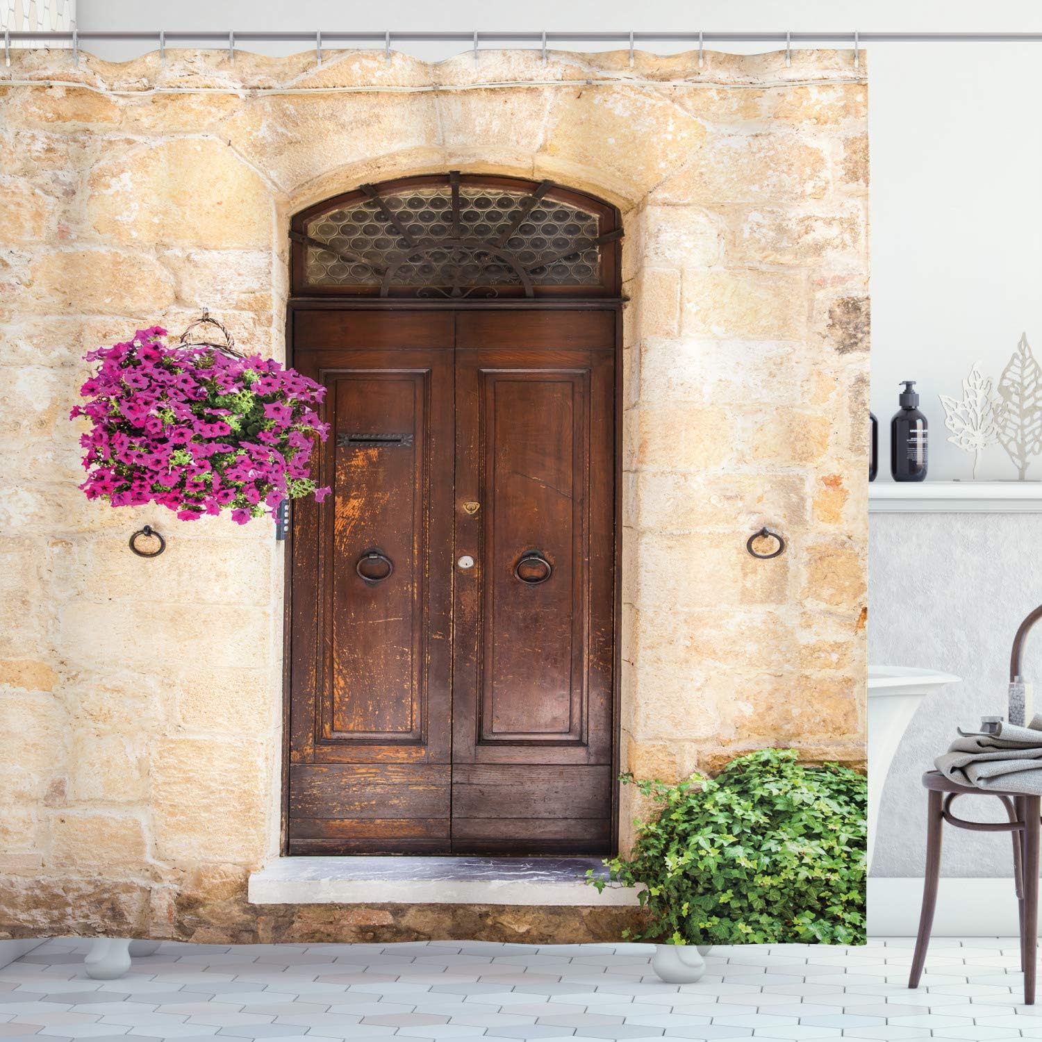 Abakuhaus Italien Rideau De Douche Rusty Porte En Bois Italienne Tissu Ensemble De Decor De Salle De Bain Avec Crochets 175 Cm X 0 Cm Creme Lilas Brown Amazon Fr Cuisine Maison