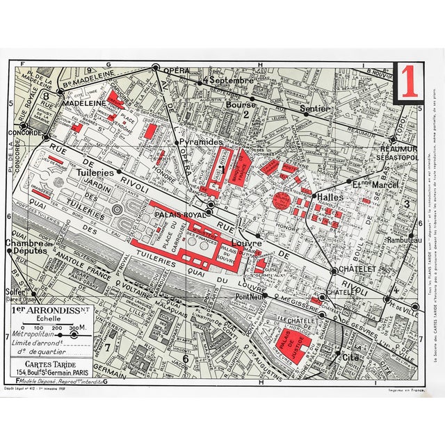 1959 Original Cartes Tarifes Map Of Paris I Arrondissement Chairish