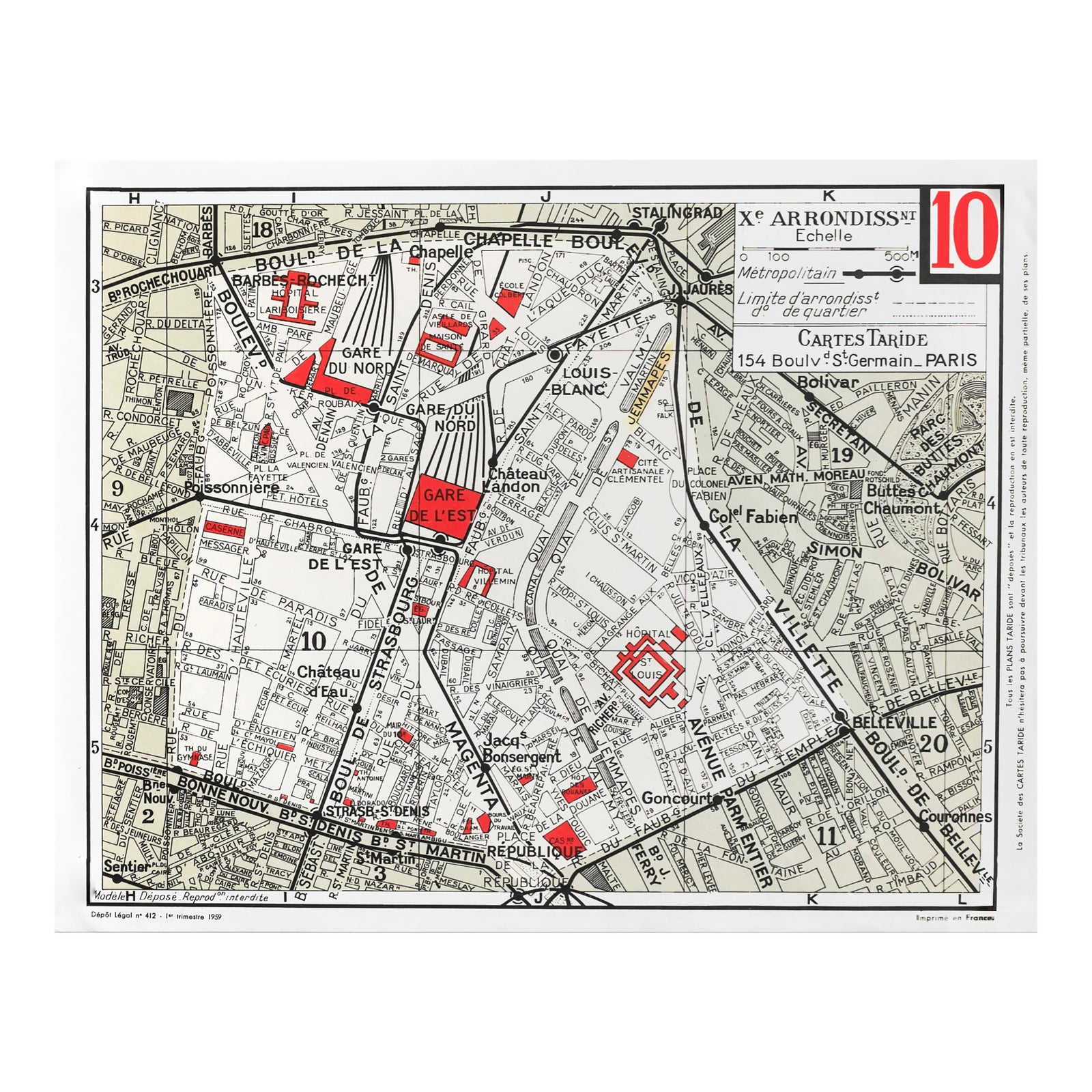 1959 Original Cartes Tarides Map Of Paris X Arrondissement Chairish