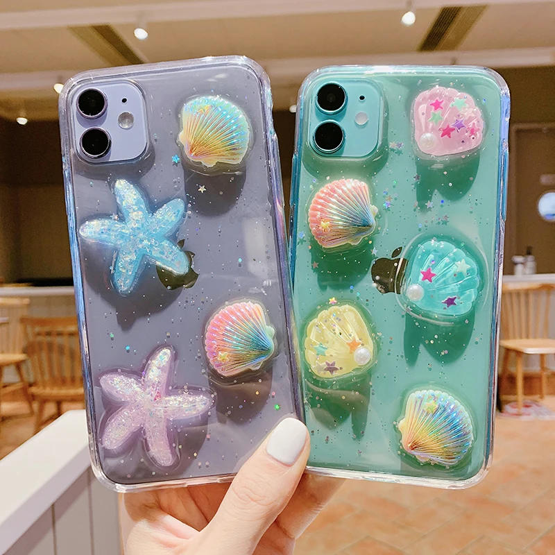 Luxe Brillant 3d Coquille Etoile De Mer Pour Iphone 11 Pro Max Se 7 8 Plus Doux En Silicone Transparent Pour Iphone X Xs Xr Aliexpress