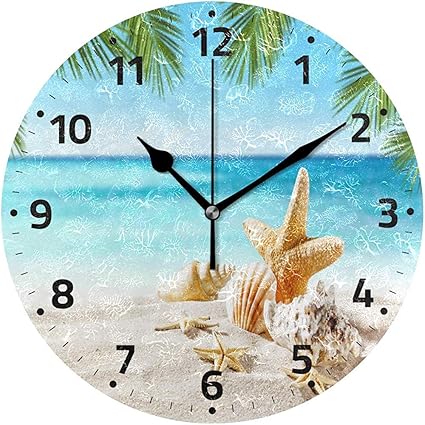 Archiba Coquille D Etoile De Mer Sur L Horloge Murale Acrylique Ronde De Sable Fonctionnant A Piles Horloge De Plage D Ete Silencieuse Amazon Fr Cuisine Maison