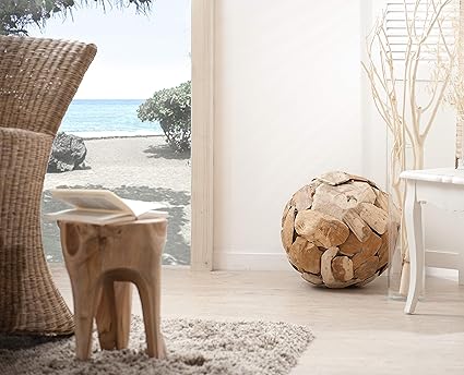 Macabane Boule Deco Bois Nature Teck 40 X 40 X 40 Cm Amazon Fr Cuisine Maison