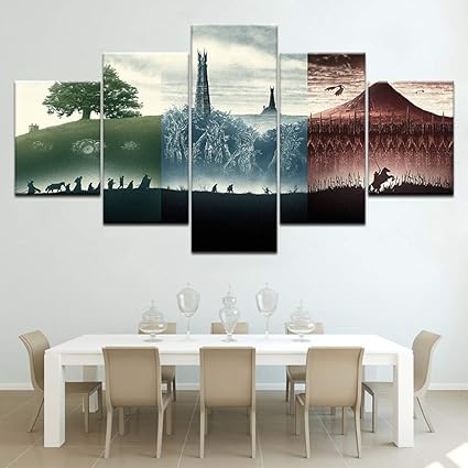 Himfl Art Mural Toile Film Le Seigneur Des Anneaux 5 Pieces Affiche La Peinture Pour Le Salon Moderne Accueil Decor Amazon Fr Sports Et Loisirs