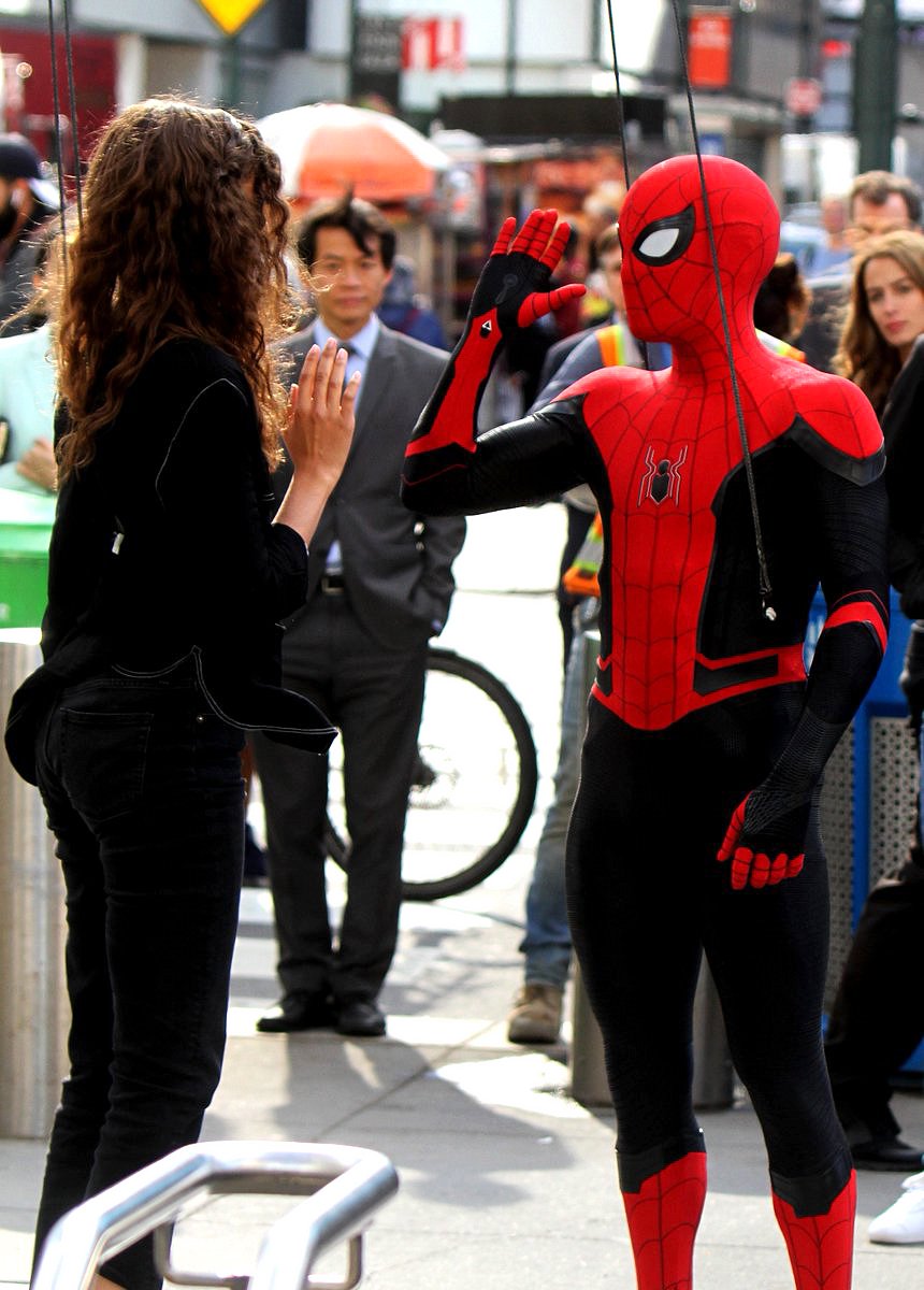 Spider Man Far From Home Set Photos Reveal Noir Style Stealth Suit