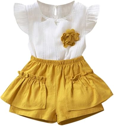 Honestyi Fille Robe Ado Creux Tops Sans Manches Volante T Shirt Couleur Unie Tops Plisse Shorts Vetements Enfants Vacances Casual Haut Bebes Elegant Tenues Pour 2 6 Ans Ete Nouveau Amazon Fr Vetements Et