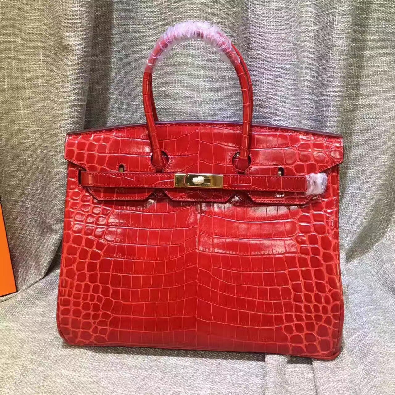 Hermes Birkin Bag Crocodile Leather Gold Hardware In Red Outlet Hermes Cheap Sale Store