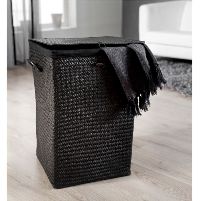 Panier A Linge Avec Couvercle Amovible En Jacinthe D Eau Noir Noir Dec Achat Vente Panier A Linge Panier A Linge Avec Couvercle Cdiscount