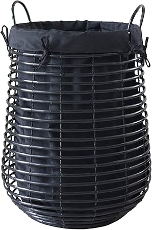 Kano Panier A Linge Noir Naturel H 56 Cm O 44 Cm