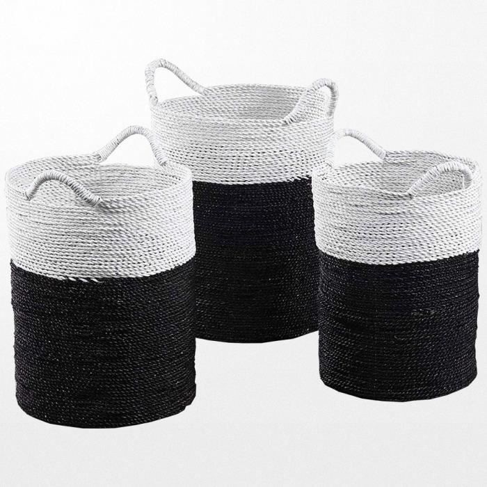 Havana Panier A Linge En Jonc Tresse Noir Et Blanc Made Com