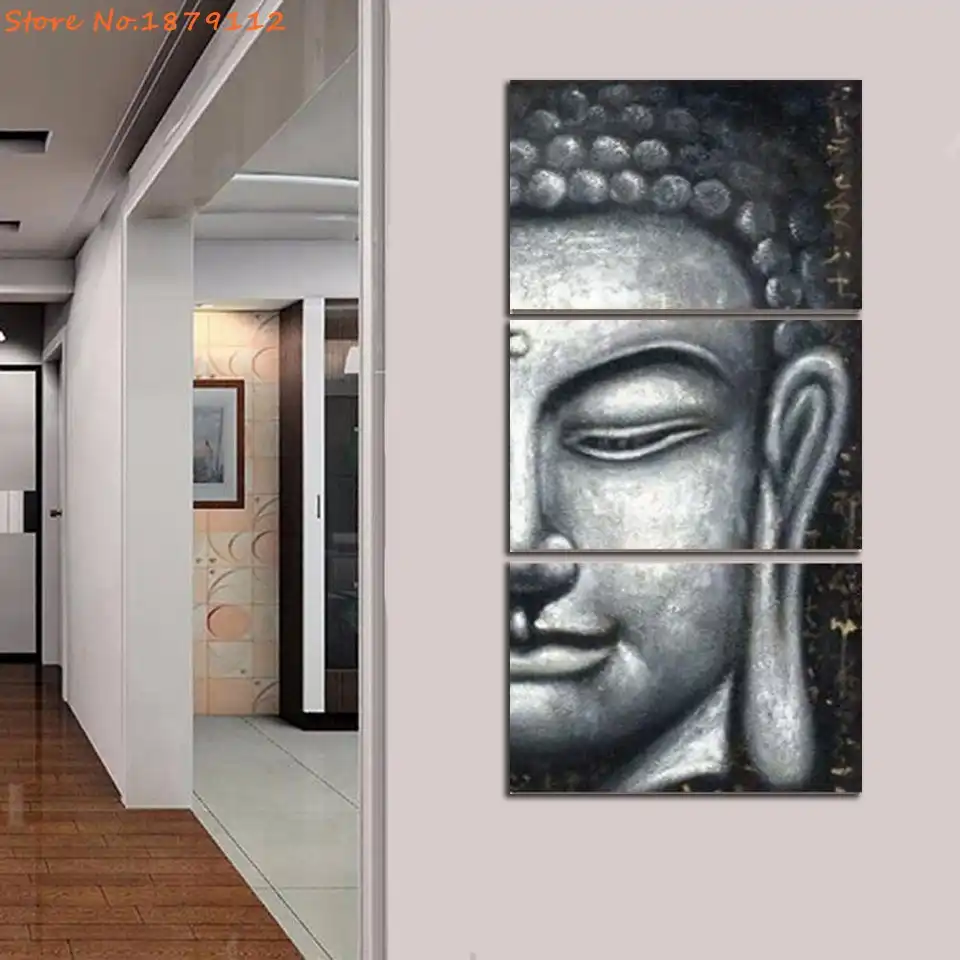 Banmu Grand Panneau Gris Sans Cadre 3 Panneaux Modernes Style Huile Impression Artistique Murale Avec Bouddha Pour Decorations De Salon Aliexpress