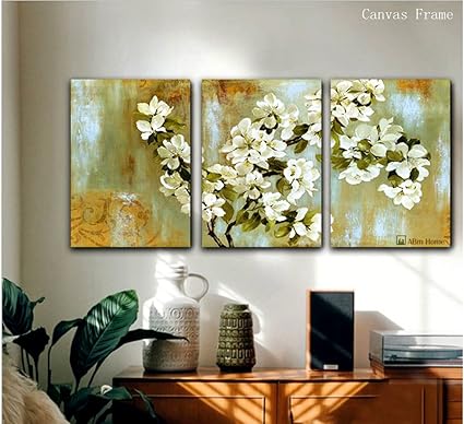 Abm Home Fleurs 51 Cm X 66 Cm Par Cadre 3 Cadres Muraux Grand Cadre Mural Style Vintage Toile Encadree Grand Poster Or Luxuriant B Amazon Fr Cuisine Maison