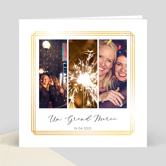 Remerciements Anniversaire Dorure Cadre 3 Photos Popcarte