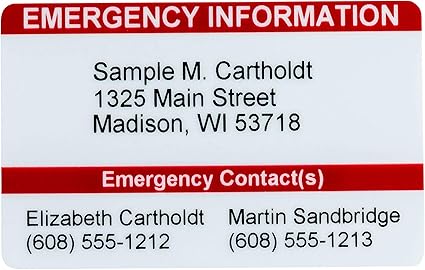 Contact D Urgence Portefeuille Carte Carte Ice Medical Carte D Identite Personnalisables Amazon Fr Fournitures De Bureau