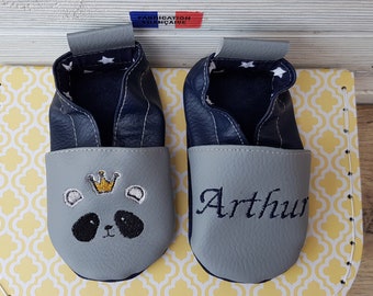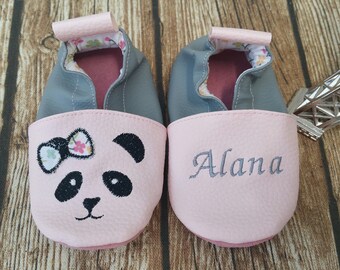 Chaussons En Cuir Souple Personnalise Motif Panda Chausson En Cuir Souple Chausson Cuir Chaussons
