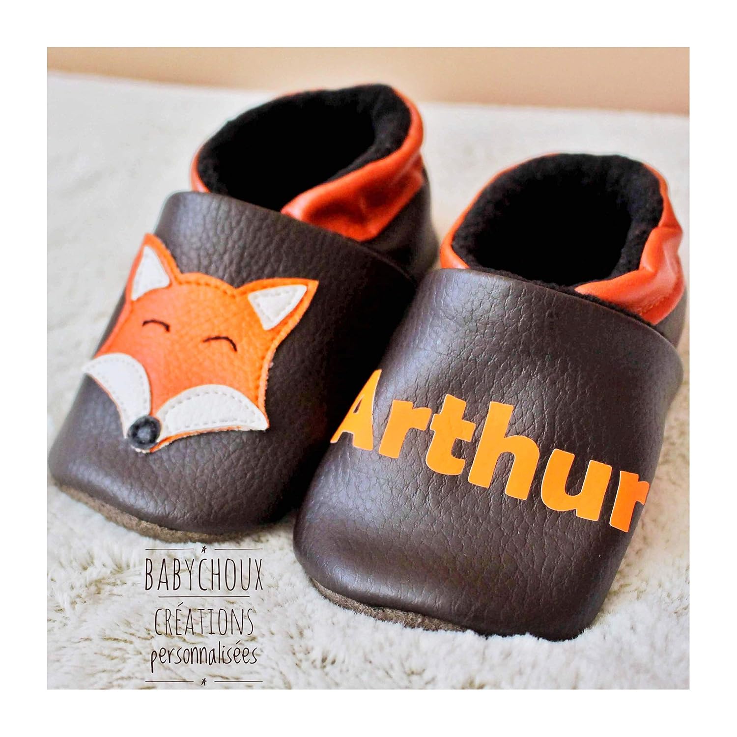 Chaussons Souple Cuir Simili Cuir Bebe Enfant Chausson Personnalise Renard Un Grand Marche
