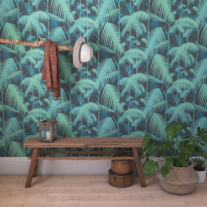 Palm Jungle Papier Peint Vert Cole Son Decofinder Decor Colonial Britannique Papier Peint Vert Papier Peint Jungle