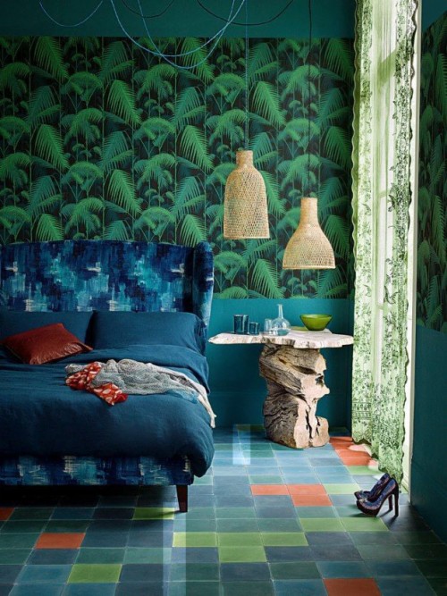 Le Jungle Appartement Renove Pour La Location Thomas Marquez Cote Maison Papier Peint Tropical Palm Jungle Amenagement Chambre Idee Chambre Deco Chambre