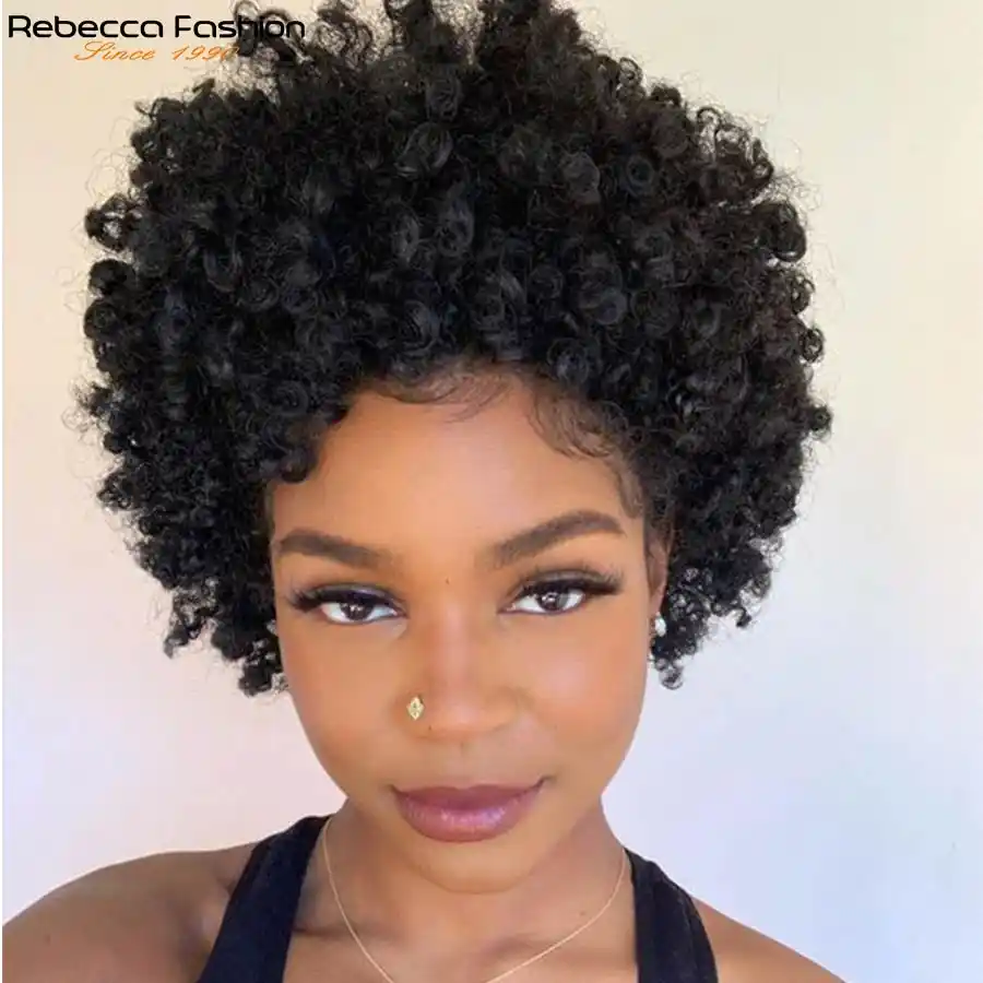 Perruque Naturelle Tutu Bouclee Noire Rebecca Cheveux Bresiliens Boucles Avec Frange Cheveux Naturels Remy Boucles Courts Noir Pour Femmes Aliexpress