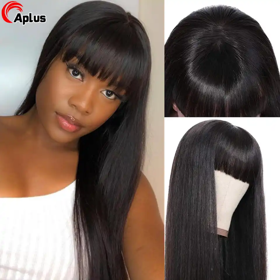 Perruque Lisse Avec Frange Femme Vrai Cheveux Naturelle 100 Bresilien Sunlight Hair