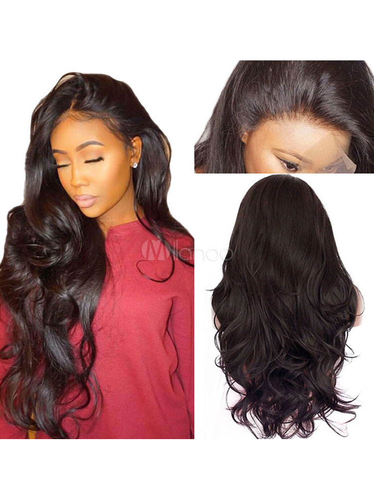 Perruque Naturelle Femme Perruque Cheveux Humain Perruque Longue Noire Lace Front Milanoo Com
