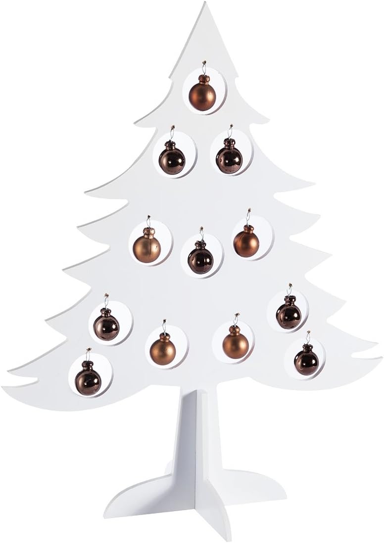 Sapin Blanc De No C3 Abl Decoration Sapin A Poser En Bois Blanc Avec 12 Boules En Suspension H36cm
