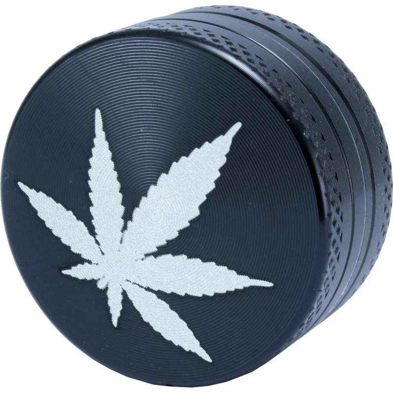 Grinder Noir 60mm Feuille De Cannabis Blanche Hashtag Cbd Products