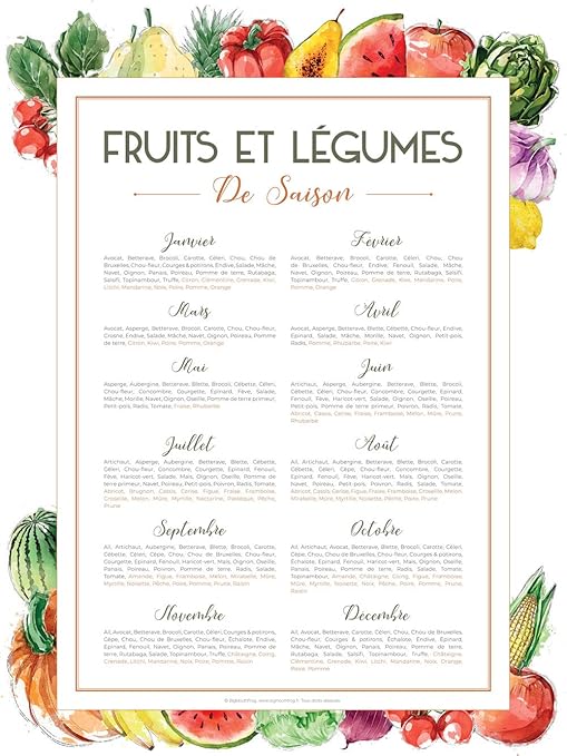 Follygraph Fruits Et Legumes De Saison Poster Affiche Calendrier Amazon Fr Cuisine Maison