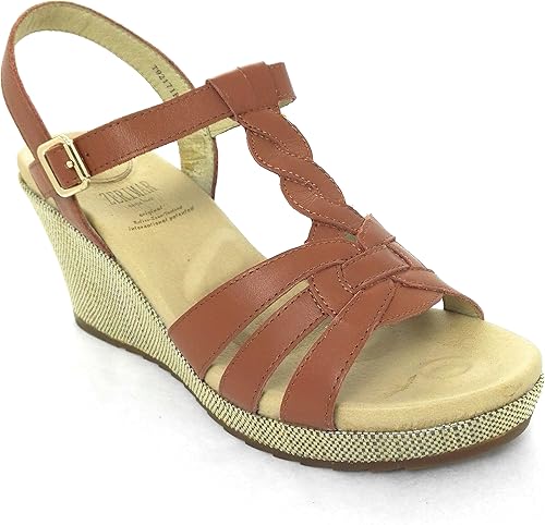Buy Sandales Femme Compensees Elastiquees Cuir Marron Paliano Tbs
